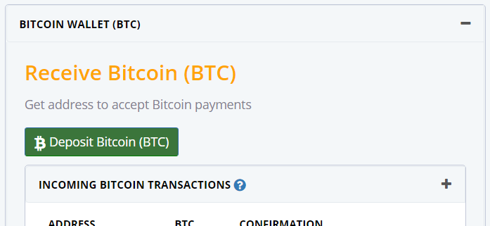 こちらの画面はBTCの入金出金が行えます。