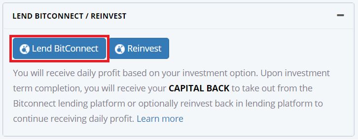 「LEND BITCONNECT」をクリックします。