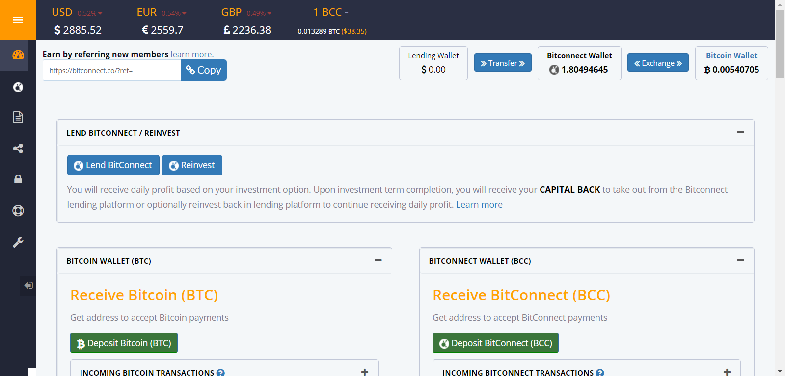 Bitconnectを引き継ぎ引き続きレンディング事業である様子です。