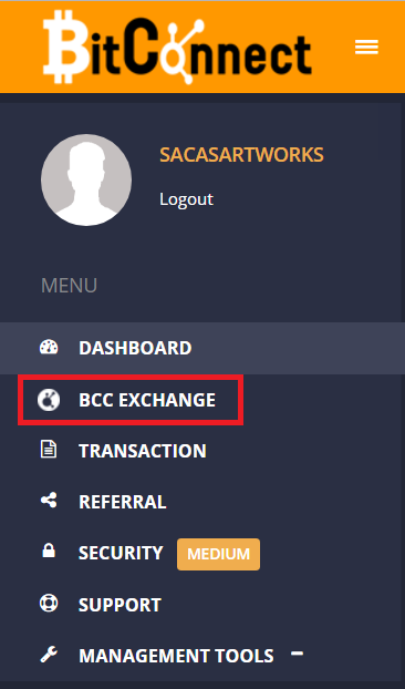 メニューのBCC EXCHANGEをクリックします。