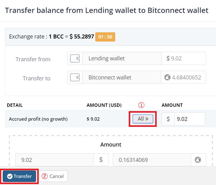 1.外部からBTCを入金→2.BCCに変換→3.投資プログラムに反映(貸付処理) の3段階