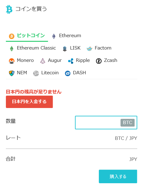 あらかじめ振込をした入金分から各通貨を購入することができます。