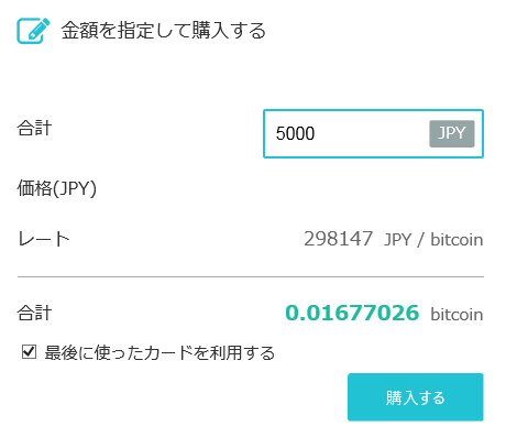 クレジット払いにしてBTCを購入できます。価格はスプレッド最高値になります。