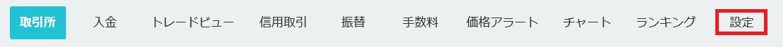 メニュー欄の「設定」を選択して設定画面へ移動します。