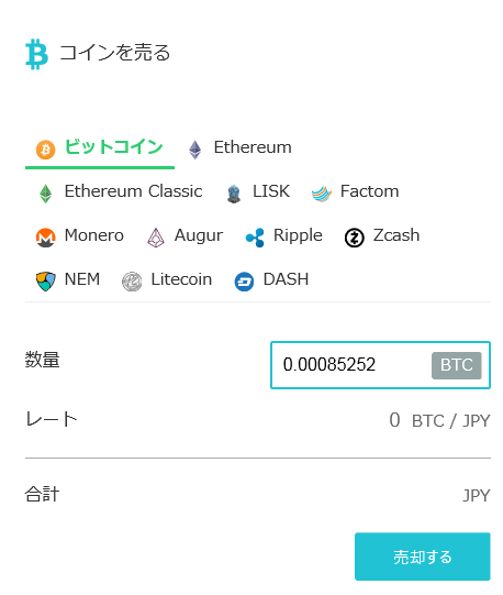 BTC / ETH / ETC / REP / LSK / FCT / XRP が可能です。