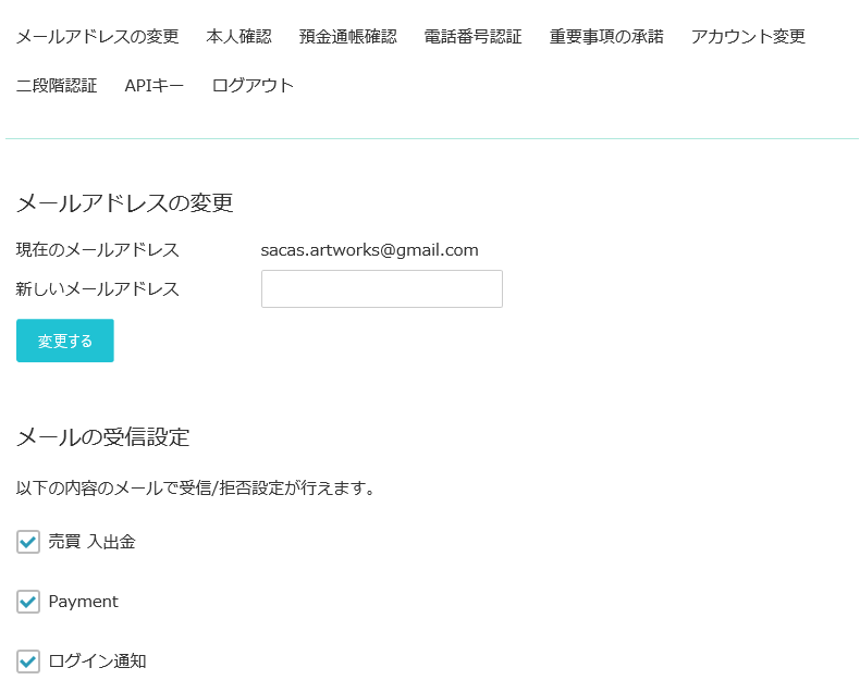 ログインはメールアドレス、パスワードが必須、2段階認証をONにしていたら認証画面が出現します。