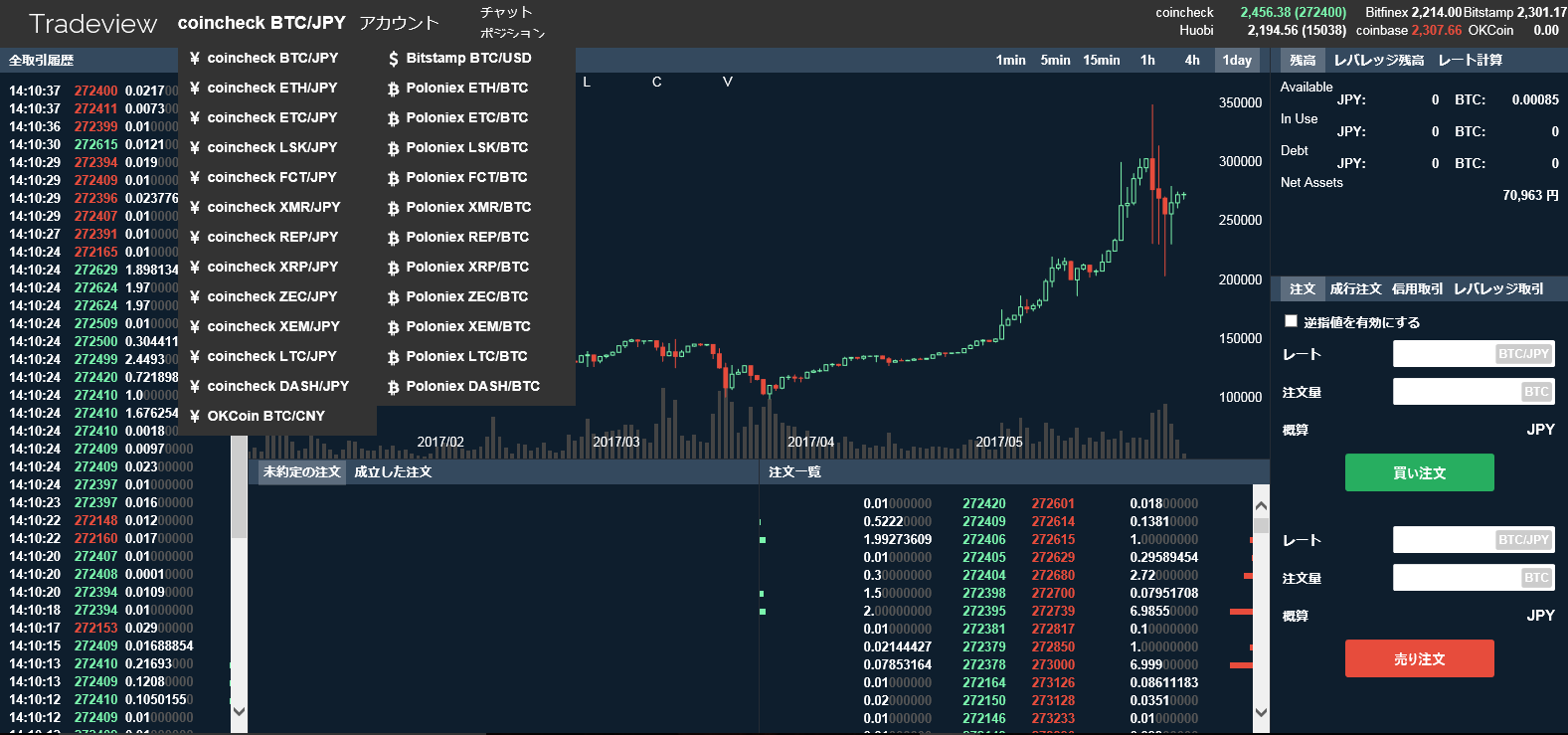 取引所…こちらでは主に取引を行う上でメニューとなっています。