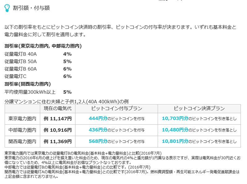 電気料金をcoincheck経由で支払うことにより一部を還元してもらえるサービス。