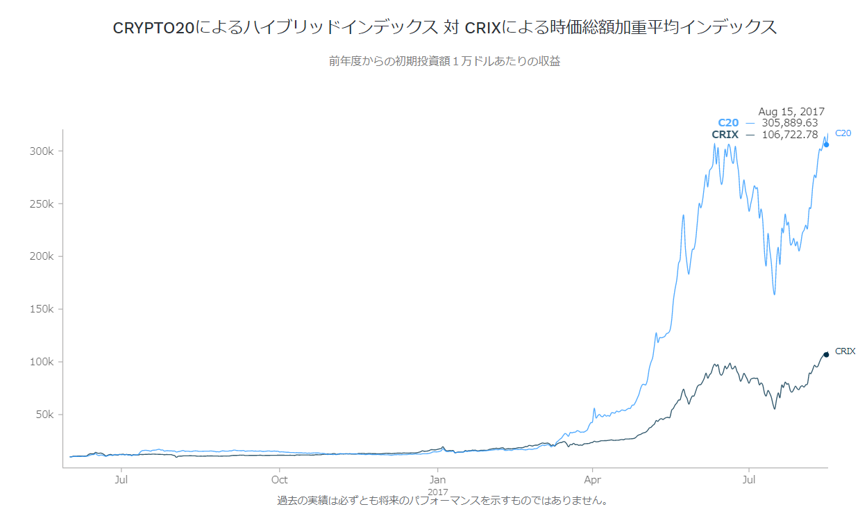 仮想通貨の中でも時価総額TOP20位に重点を置き運用しているところこちらのインデックスファンドは発足以降、従来型ファンドよりも優れた結果を出し続けています。