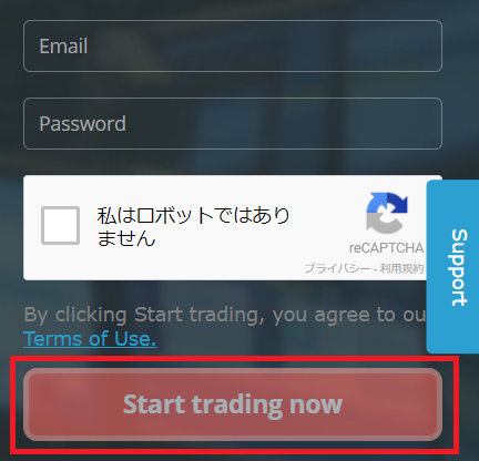 メールアドレスとパスワードを入力、人間認証の後ログインボタンをクリックをします。