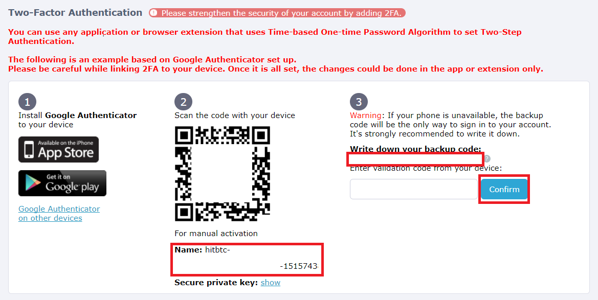 文字を入力し「Confirm」をクリックすると二段階認証のアクティベートメールがメールアドレス宛に送られます。