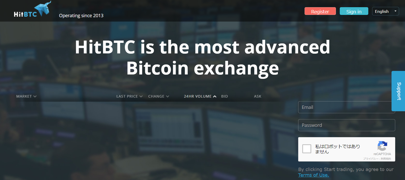 HitBTCは2013年にイギリスで開設されたアルトコインを数多く取り扱う海外取引所です。