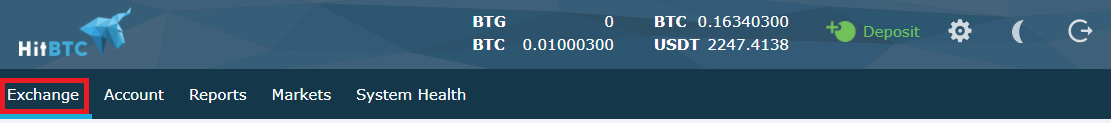 実際の取引はトップ画面左の「Exchange」をクリックします。