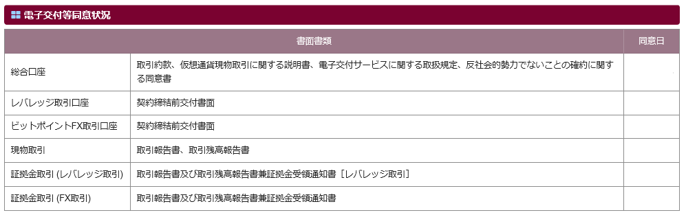 各取引を行うにあたって確認した同意履歴が確認できます。