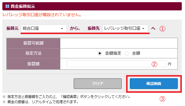レバレッジを利かせて取引を行う場合資金を窓口に振替しなければなりません。