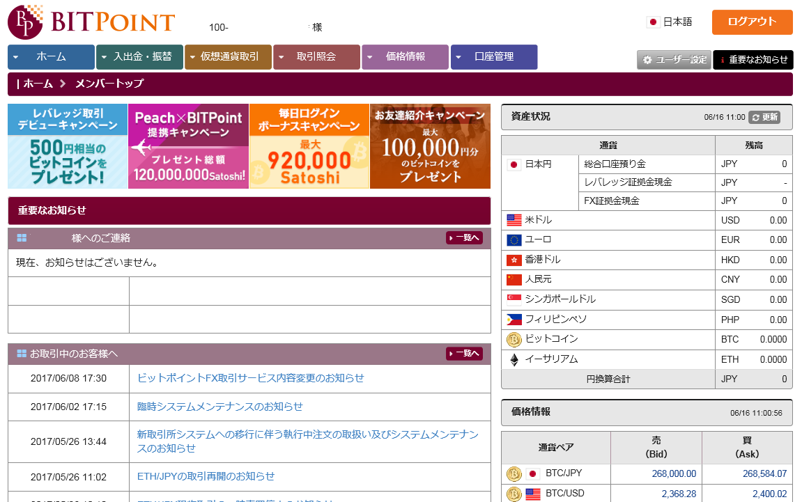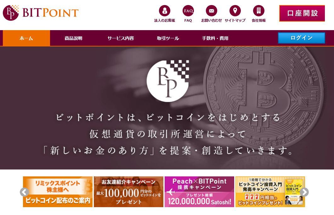 BITPOINTは株式会社 ビットポイントジャパンが運営する仮想通貨取引所になります。