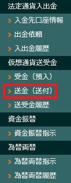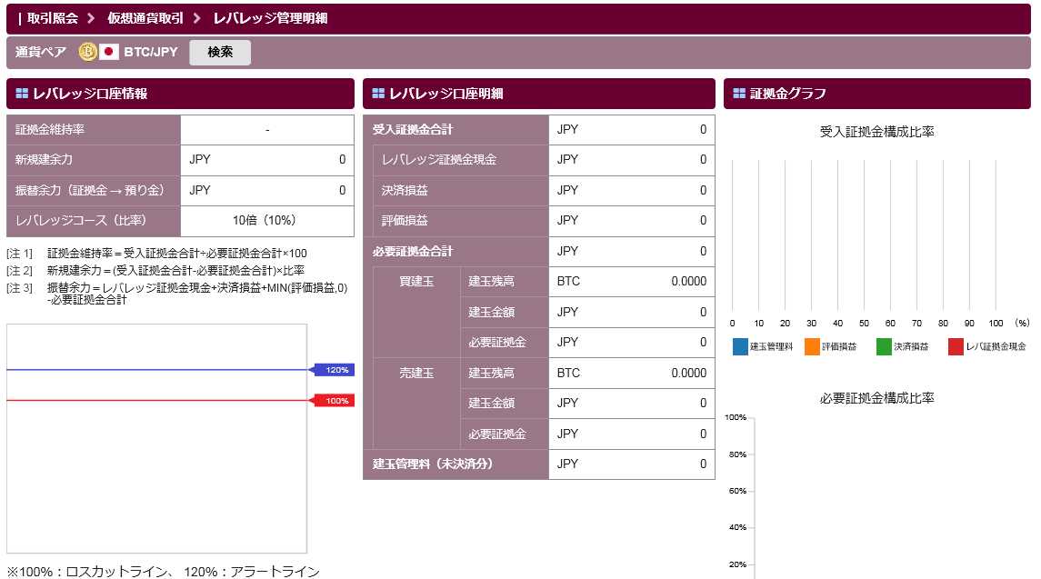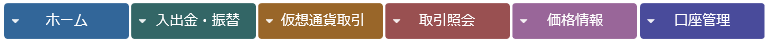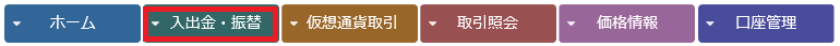 主に法定通貨と仮想通貨の入出金、レバレッジ取引への振り替えを行います。