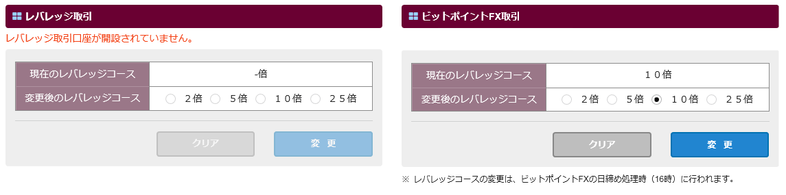 レバレッジ・FXでのレバレッジ倍率変更をこちらで行います。