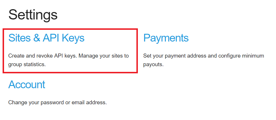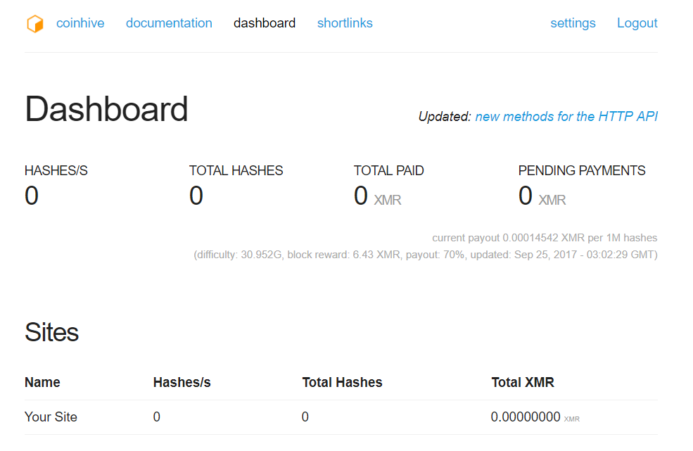 APIは1サイトにつき1アカウントの取得になります。(Coinhive 1アカウントにつき最大5APIまで取得できます)