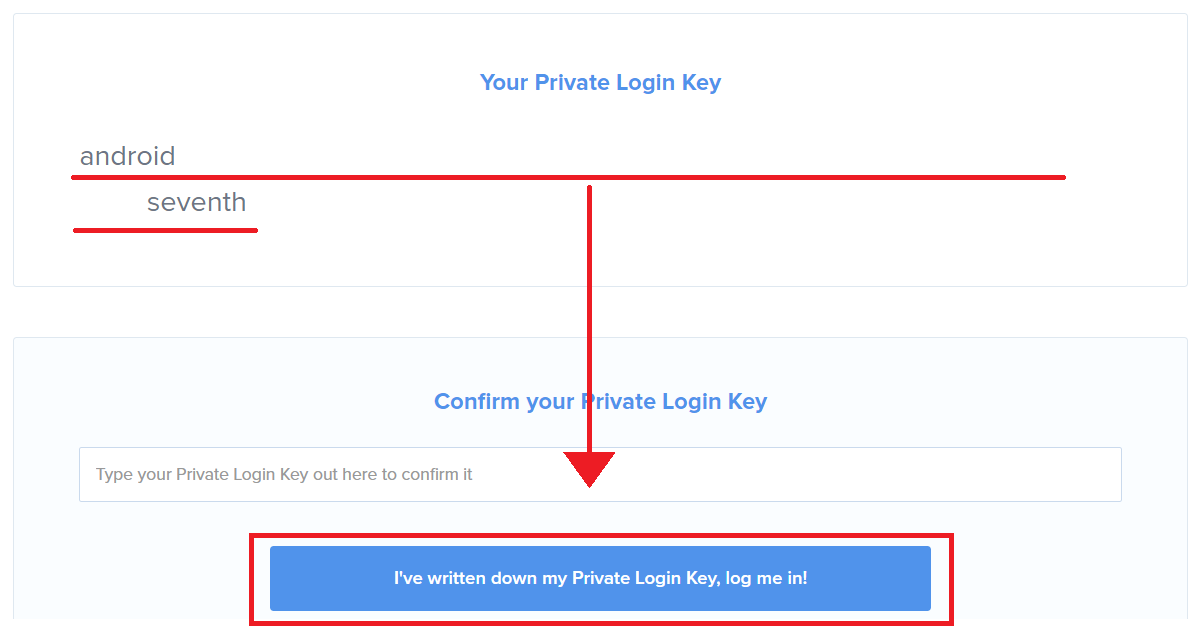 Private Login KeyをコピーしConfirmの欄にペーストします。