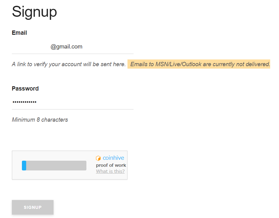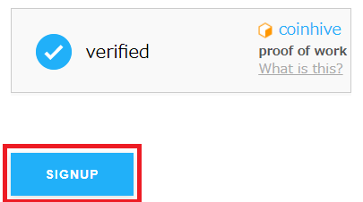ゲージがたまるとverifiedとなります。そのまま「SIGNUP」をクリックします。