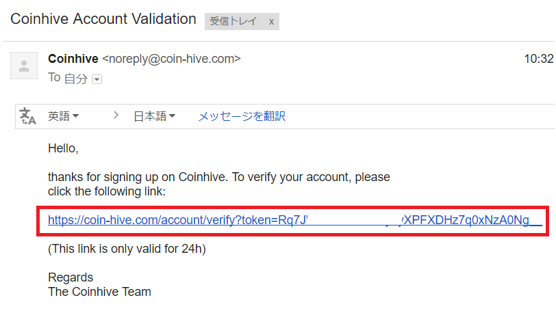 メールに送られてきたアドレスをクリックしアクティベートします。
