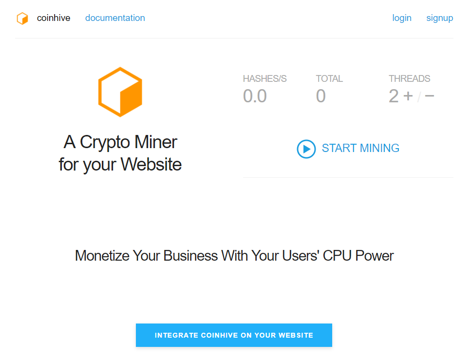 簡単なAPIとJavascriptコードをサイトに導入するだけでそのサイトに閲覧者がアクセスしている最中クラウドで閲覧者端末を介してマイニングを行う仕組みでアフィリエイトに代わる新たな収入手段として注目されています。