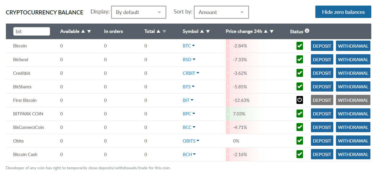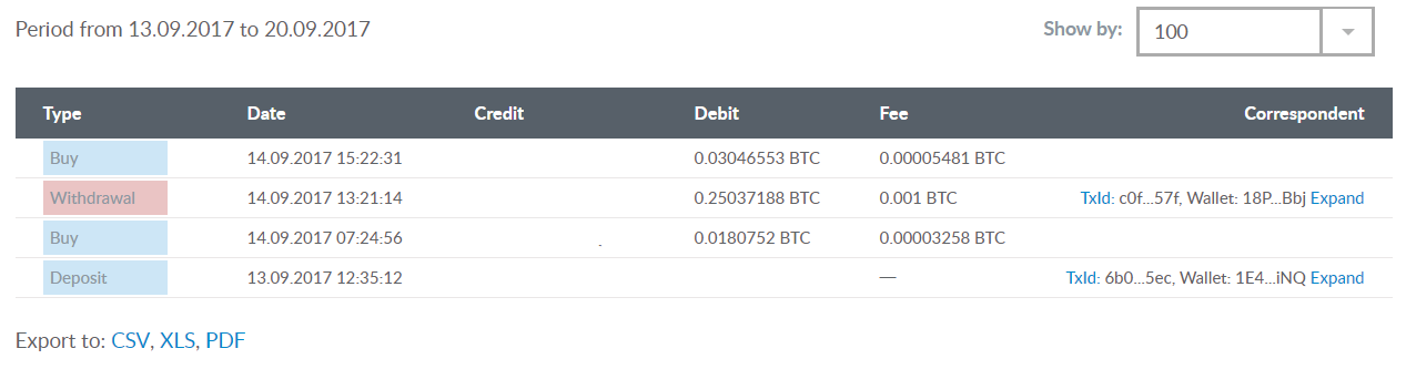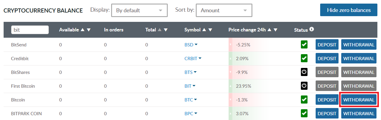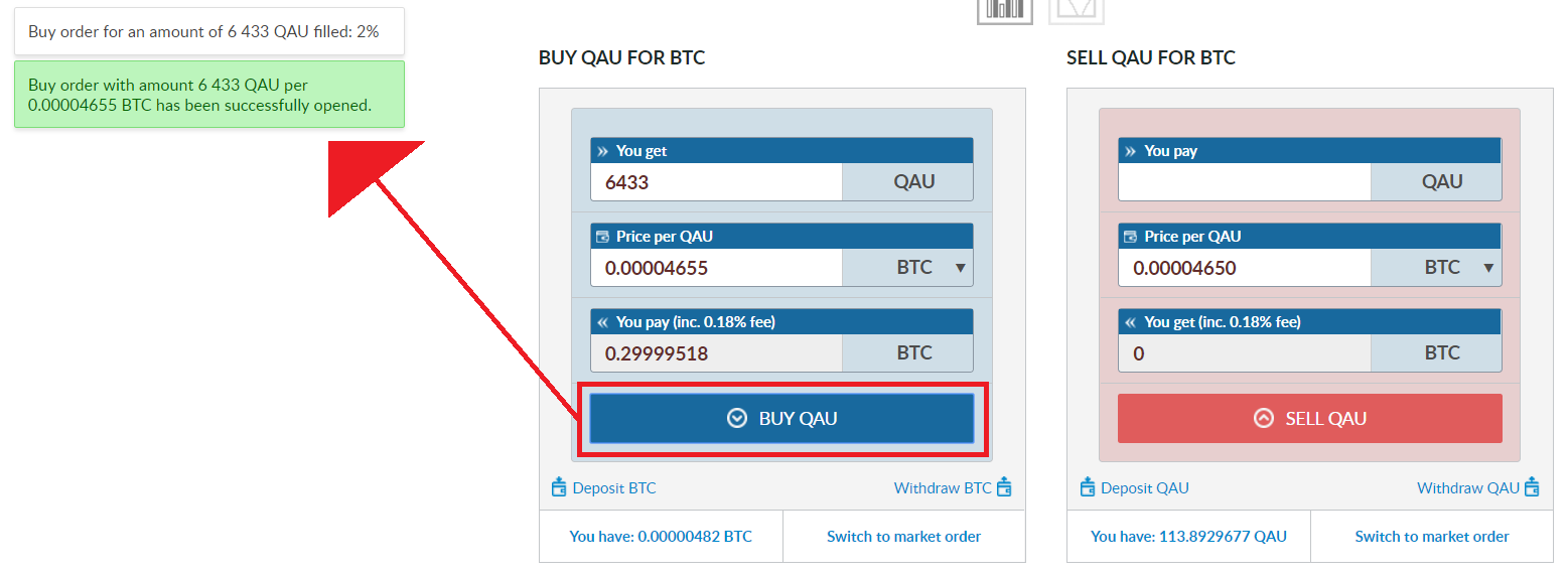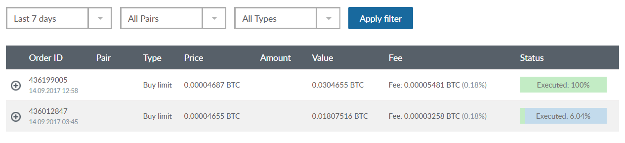 ※最小注文数は0.0001BTCでなければなりません。ETH / RUR、EUR / USDなどの取引ペア(BTCなし)は、実際の価格に従ってBTCでカウントする必要があります。