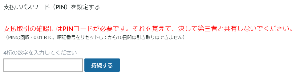 コインの取り扱いに必要なPINコードの設定を行います。