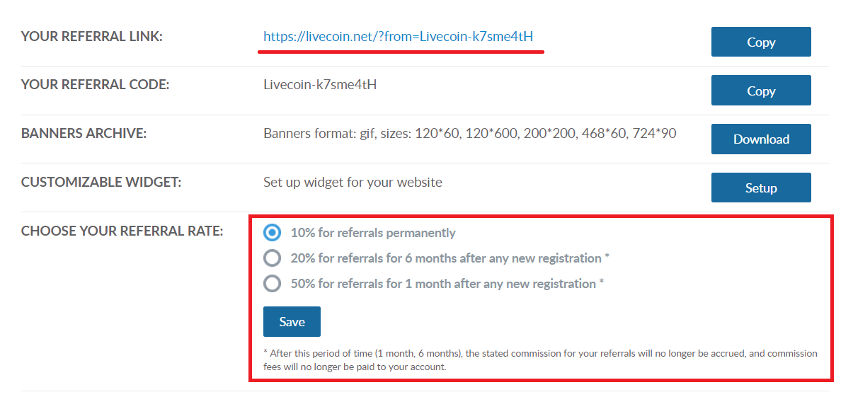 LIVECOINでは3種類のアフィリエイト報酬があります。
