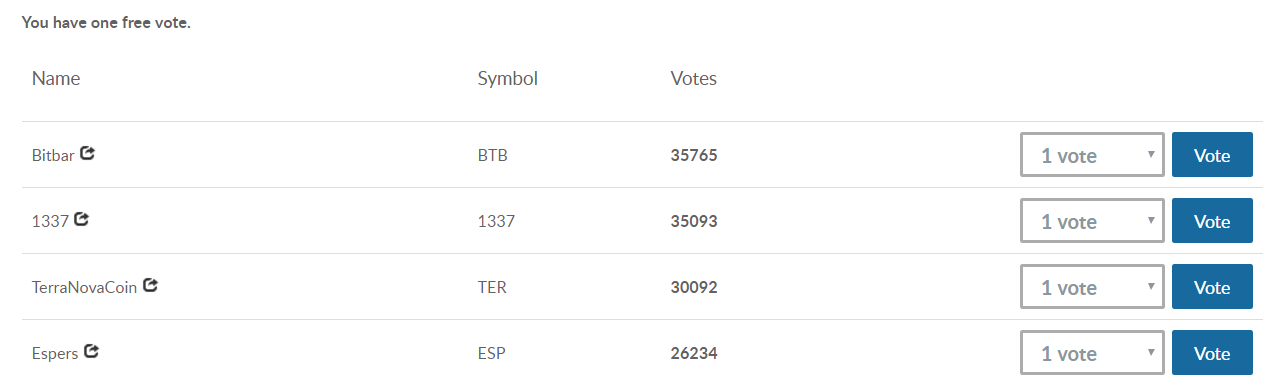 COIN LISTINGで案内のある投票受け付け画面になります。