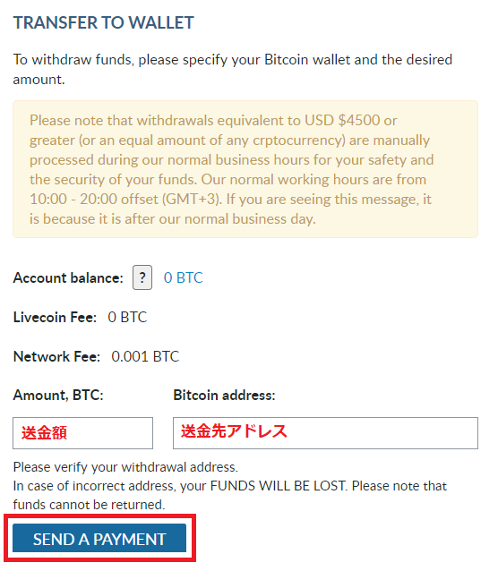 送金先アドレスと送金数を入力し「SEND A PAYMENT」をクリックします。