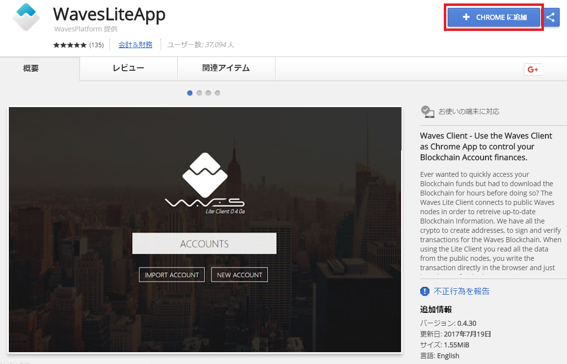空き容量が2MB以上あることを確認し「CHROMEに追加」をクリックします。