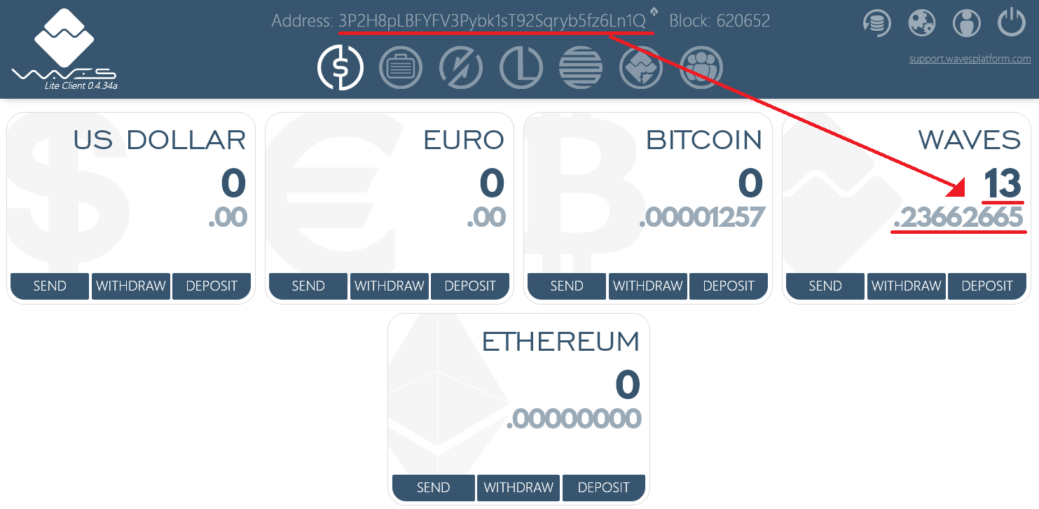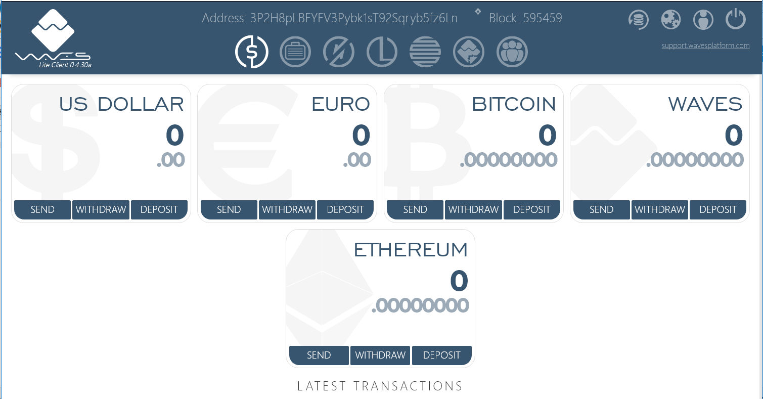 ウォレット先の取引所DEXにて仮想通貨BTC、ETHでの取引購入が可能ですが購入には手数料としてWavesが必要となってしまいBTCとETHのみでの購入ができない仕様となっております。