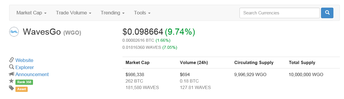 WGO(WavesGoトークン):約100k WGOをライザーに配布 - BearWaves … すべての手数料の100%とMRTの100%が共有。